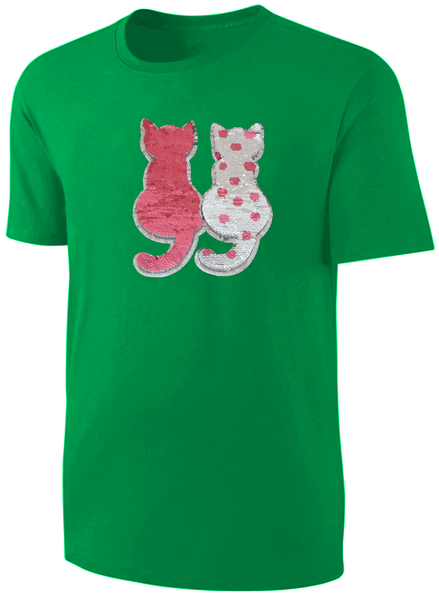 Zwei Katzen aus Wendepailletten in Silber/Pink.