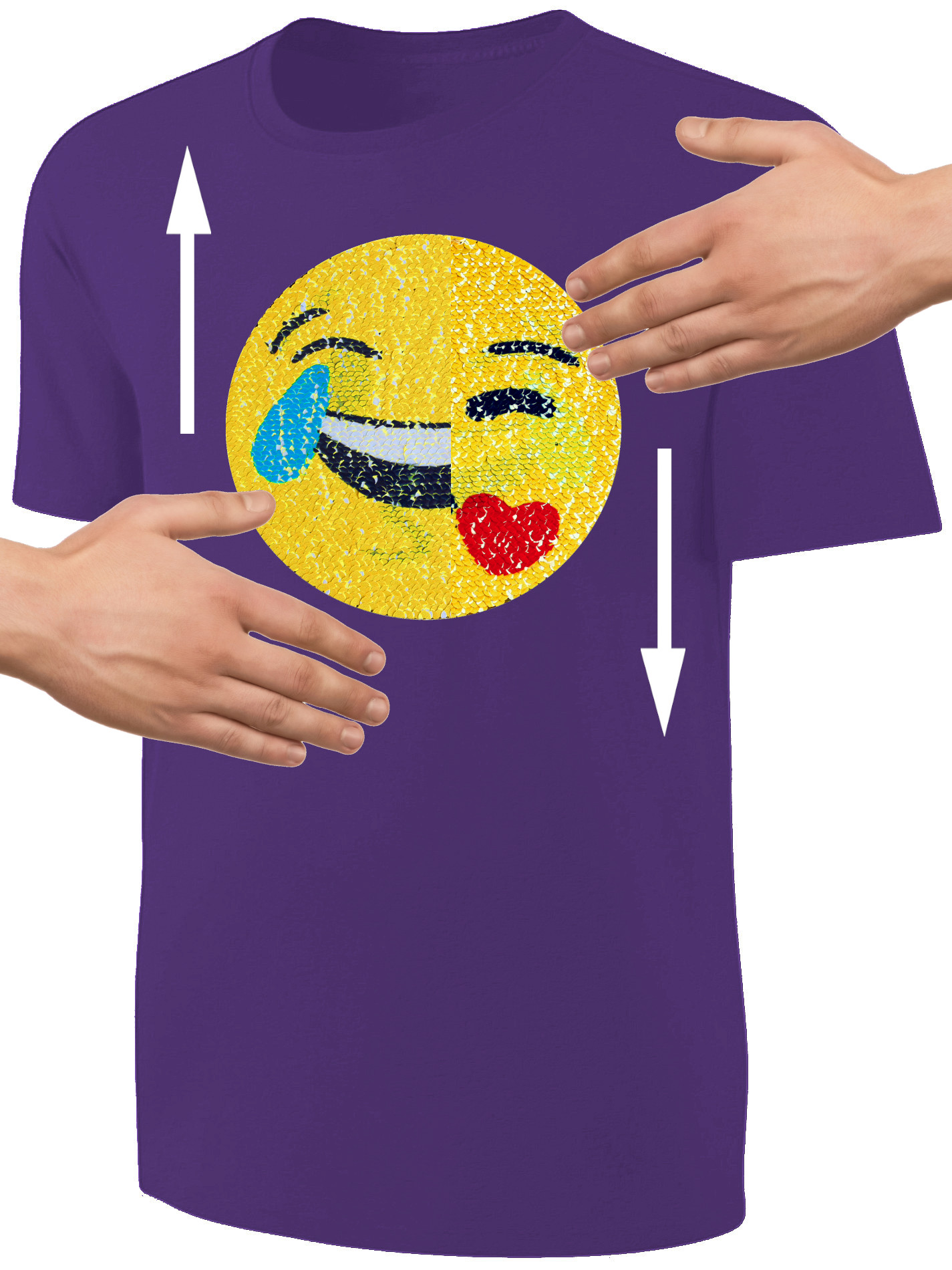 Kinder Wendepailletten T-Shirt Emoticon mit Kussmund / Lachtränen - Lachgesicht Mädchen Streichel Shirt - Lila