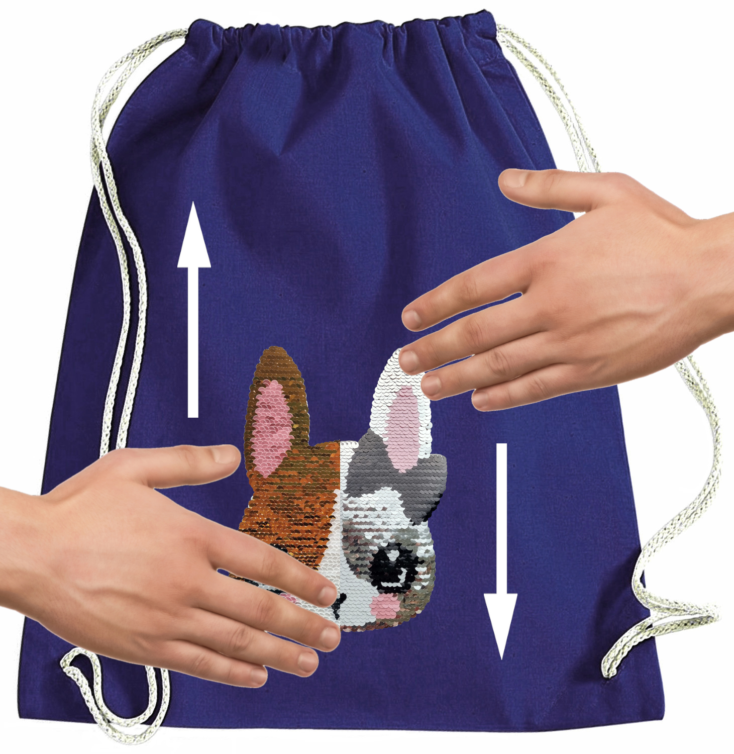 Kinder Turnbeutel Wendepailletten Hase - Kaninchen Sportbeutel Hasen Turnsack - Blau
