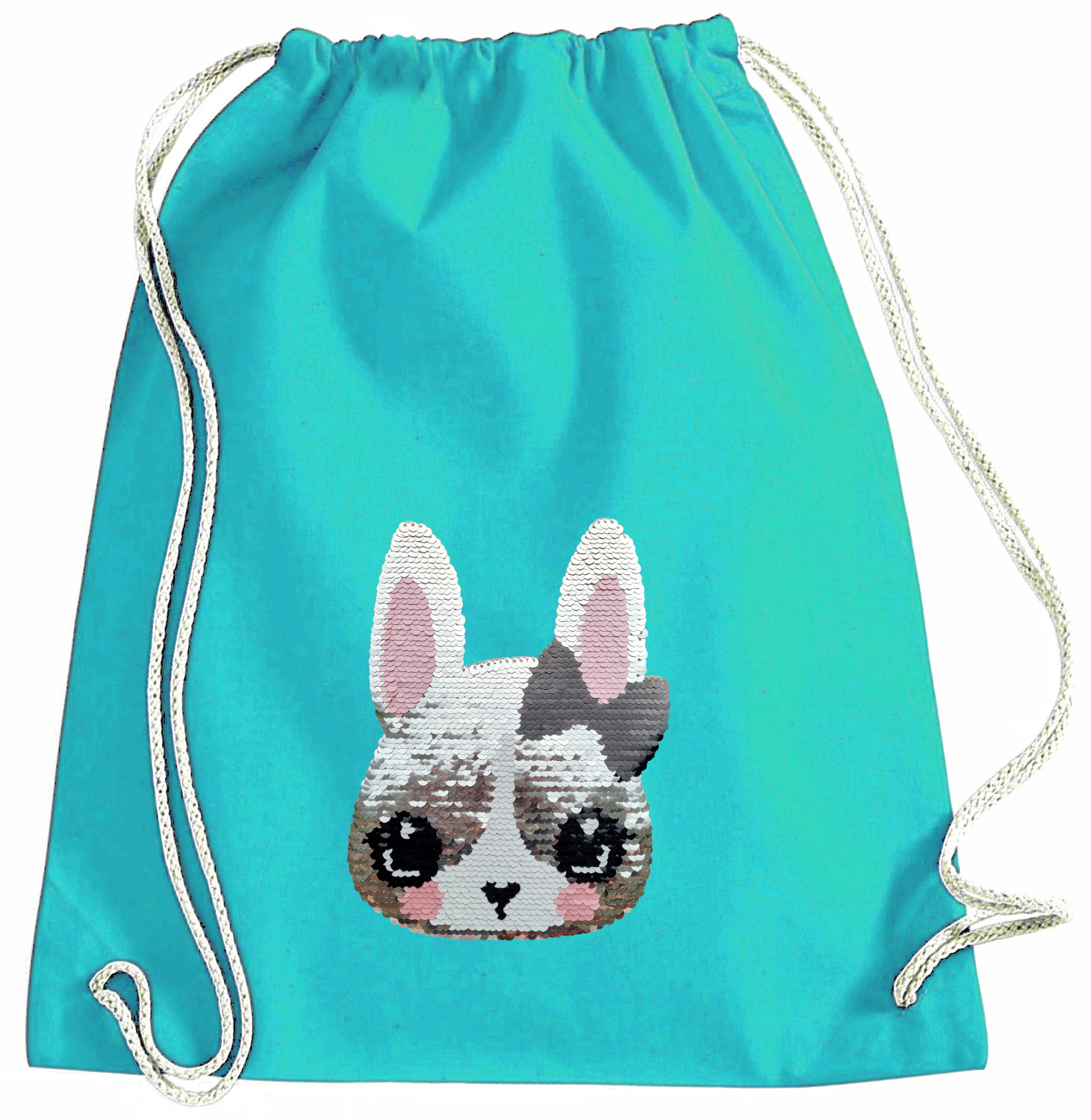 Kinder Turnbeutel Wendepailletten Hase - Kaninchen Sportbeutel Hasen Turnsack - Türkis