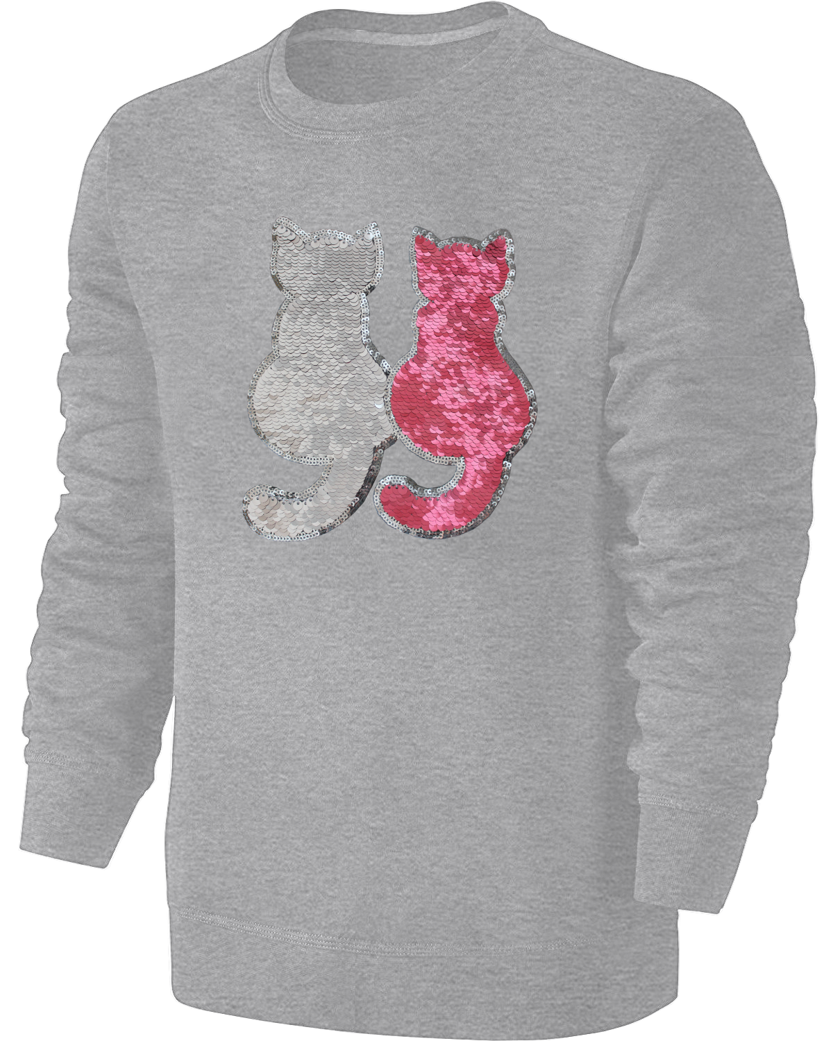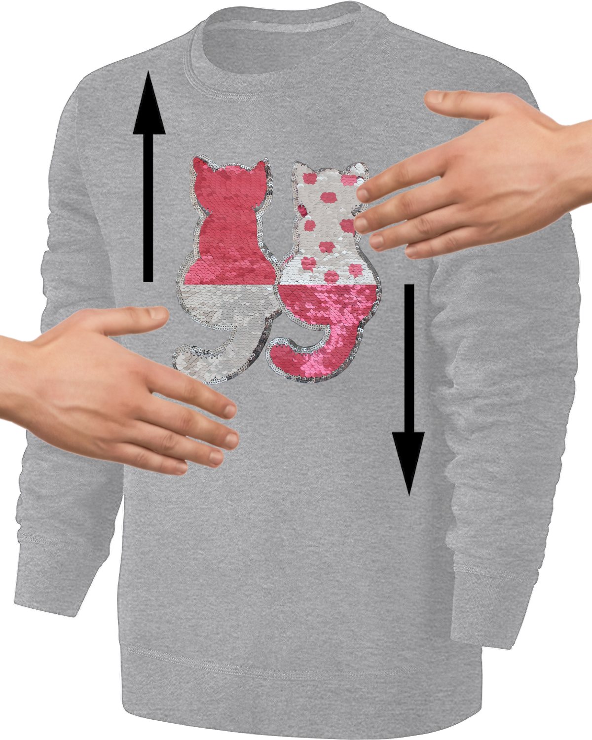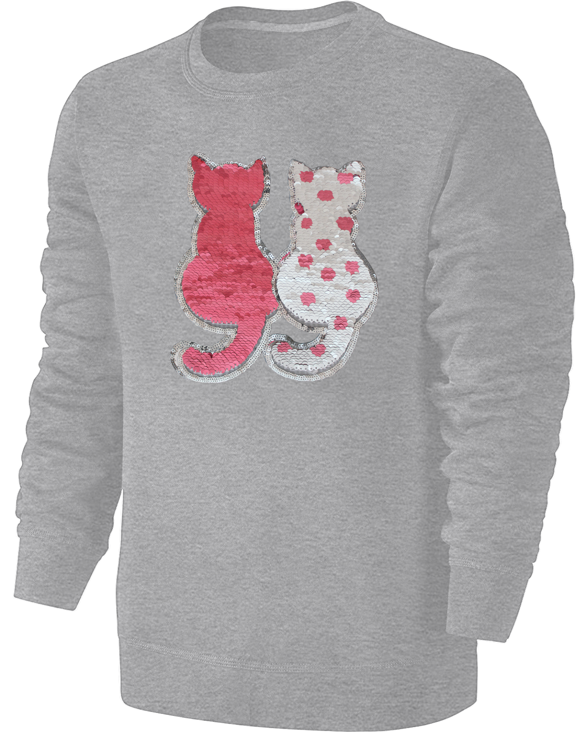 Kinder Wendepailetten Katzen Sweatshirt - Katze Streichel Pullover Pulli Hoodie Mädchen - Grau