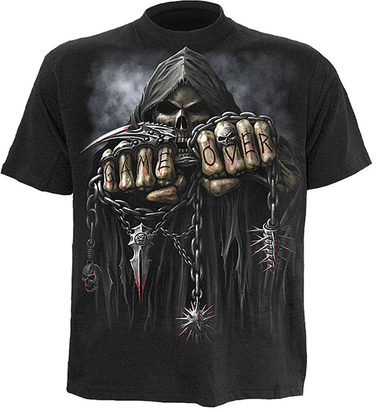 Auf jeden Finger ist ein Buchstabe eintätowiert. G A M E O V E R