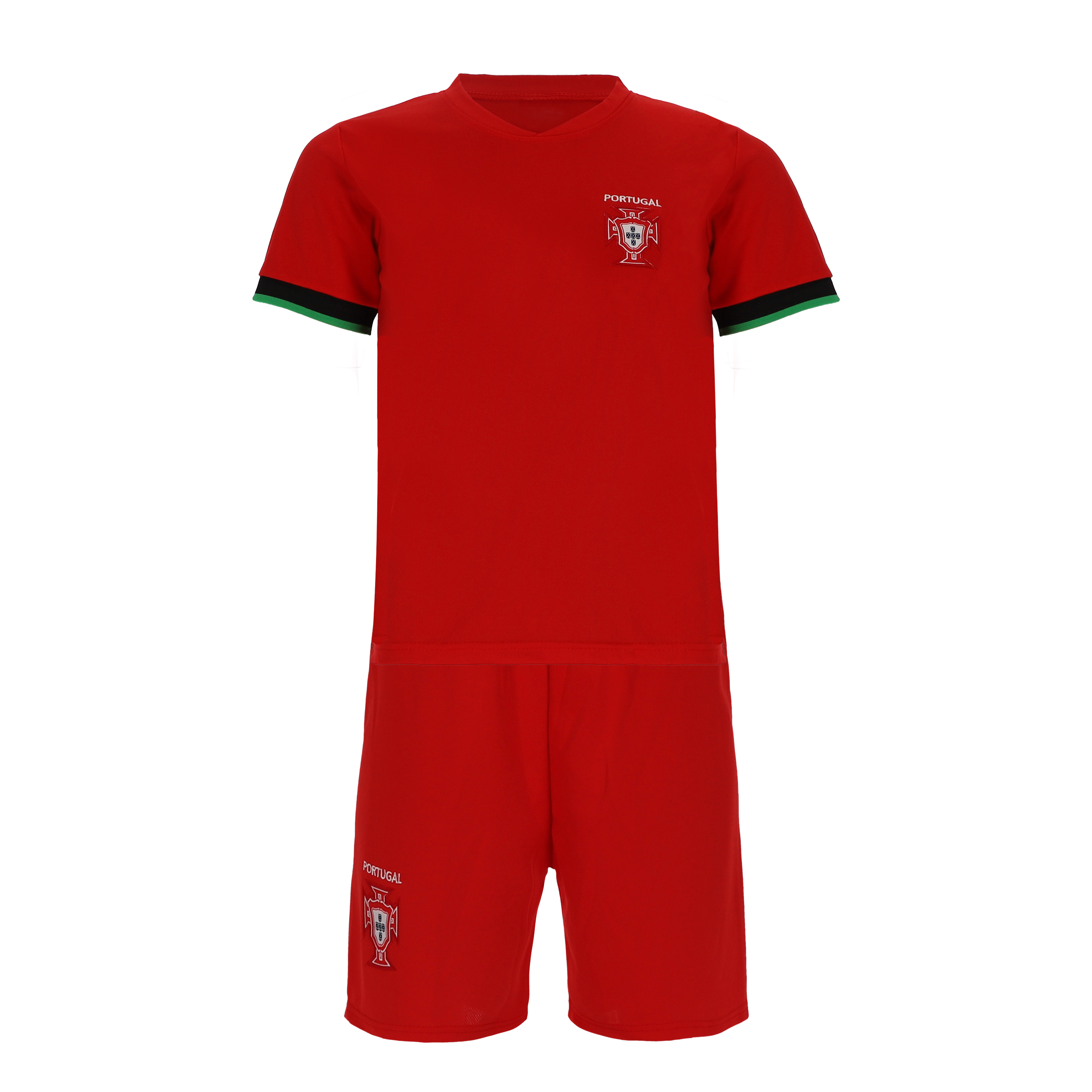 Schönes Portugal-Trikot-Set für Kinder und Jugendliche mit Stickerei-Emblem und gesticktem Schriftzug "Portugal" auf Brust und Hosenbein sowie der Siebdruck-Aufschrift "Portugal" auf dem Rücken. Ein Muss für alle Fußball-Fans!